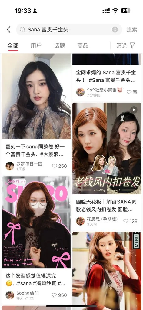 Sana (princess)'s noble, luxurious and elegant hairstyle, China Xiaohongshu, over 9.4 million views, No. 1 hot topic